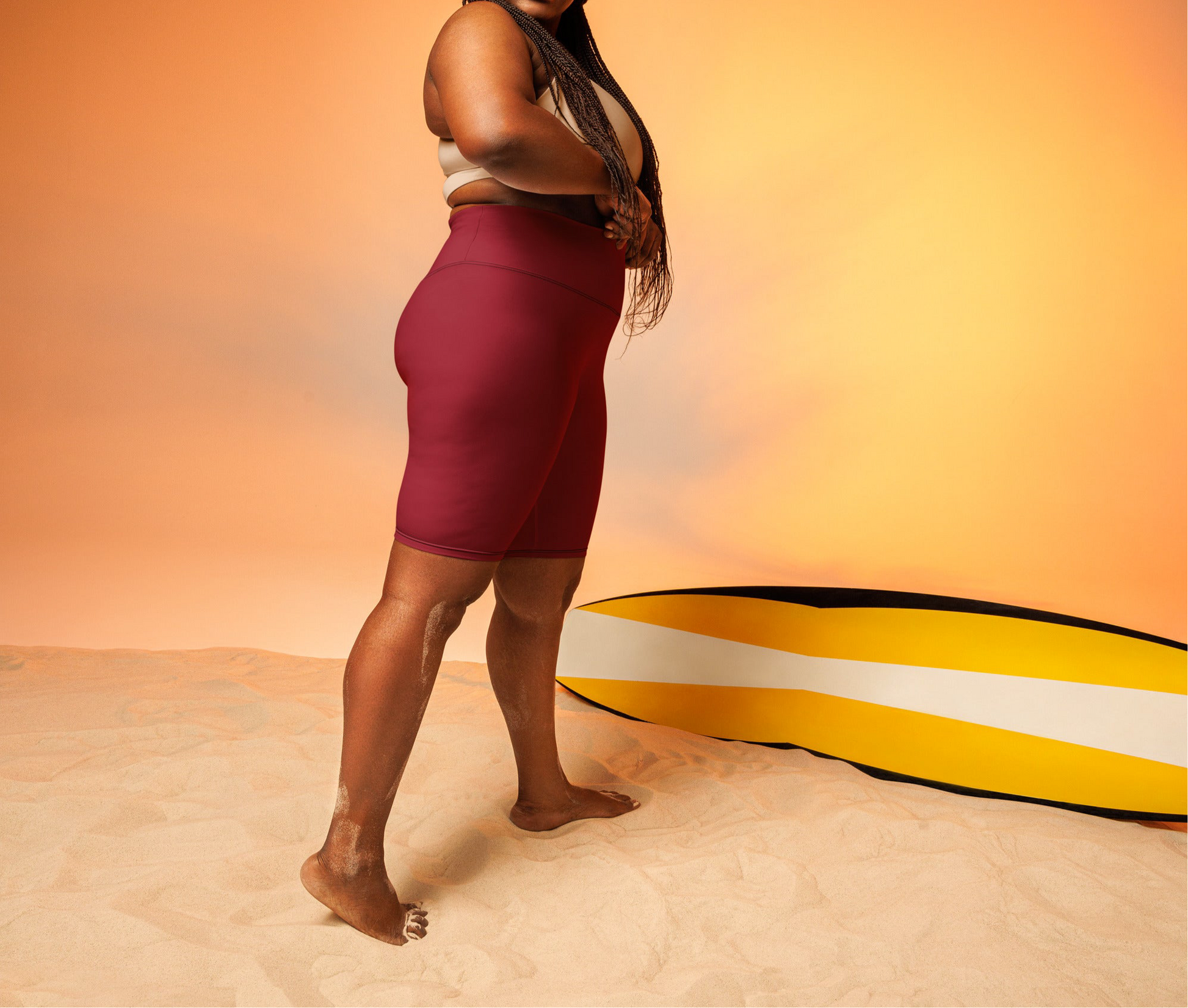 These long biker shorts are high-waisted, flattering to all body types and comfortable. Mix and match with your favorite bikini tops to create endless unique looks for every beach day or poolside moment.